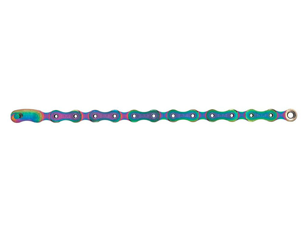 La cadena SRAM Eagle X01 es la pieza clave para que todo el engranaje del cambio funcione a la perfección. Cuenta con las tecnologÃas Hard Chrome y el tratamiento Titanium Nitride que tienen como objetivo mantener la corrosión a raya y mantiene el eslabón rápido que de tantos lÃos nos ha sacado pero que en la versión Eagle se rediseña también para garantizar su eficacia. Dado que la distancia entre las coronas es menor, la cadena también sufre un ligero estrechamiento, por este motivo SRAM ha recurrido a nuevos métodos de fabricación: cada eslabón está realizado mediante una técnica progresiva de estampación sobre el metal en varias fases, que otorga una alta precisión.